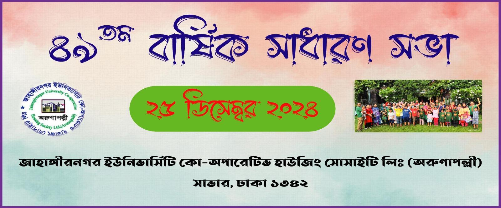 The objective of the Society is to provide quality living conditions for Members by providing facilities to secure none other than residential accommodation. The area of operation of the Society is restricted to activities in the concerned area of Jahangirnagar University Co-operative Housing Society Limited (ARUNAPALLI) in Upazila - Savar, Zila — Dhaka; and such other places, which are contiguous to the existing land, as may be proposed by the Managing Committee.